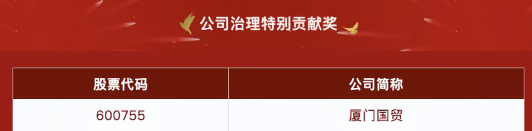 廈門國貿(mào)榮獲第二十屆 “金圓桌獎”之“公司治理特別貢獻獎”。