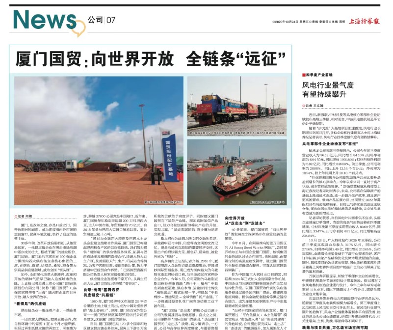 上海證券報(bào) | 廈門國(guó)貿(mào):向世界開放 全鏈條“遠(yuǎn)征”。